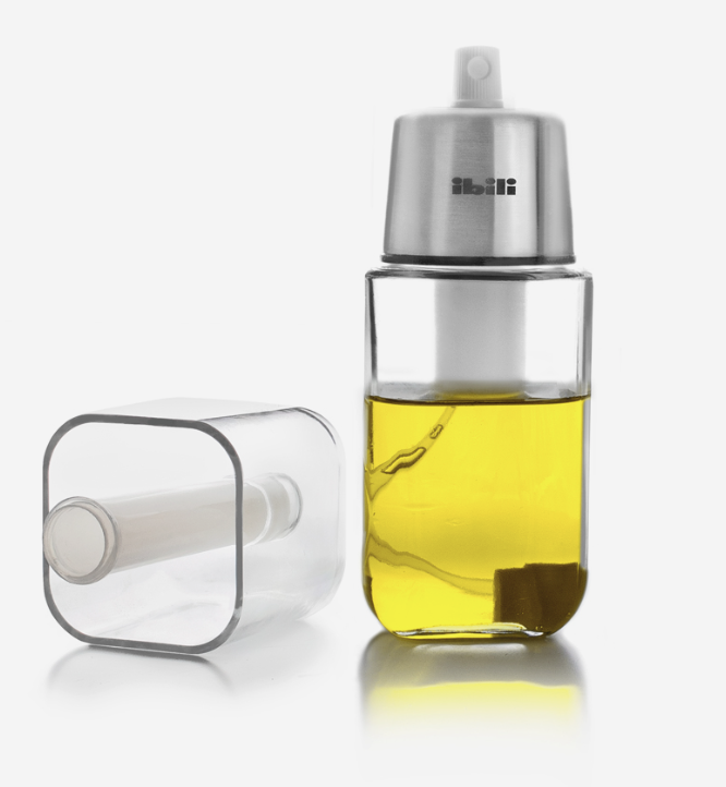 Este pulverizador de óleo, com recipiente em vidro e tampa doseadora em aço inoxidável, destaca-se pela sua capacidade de poupar na utilização de óleo/azeite.